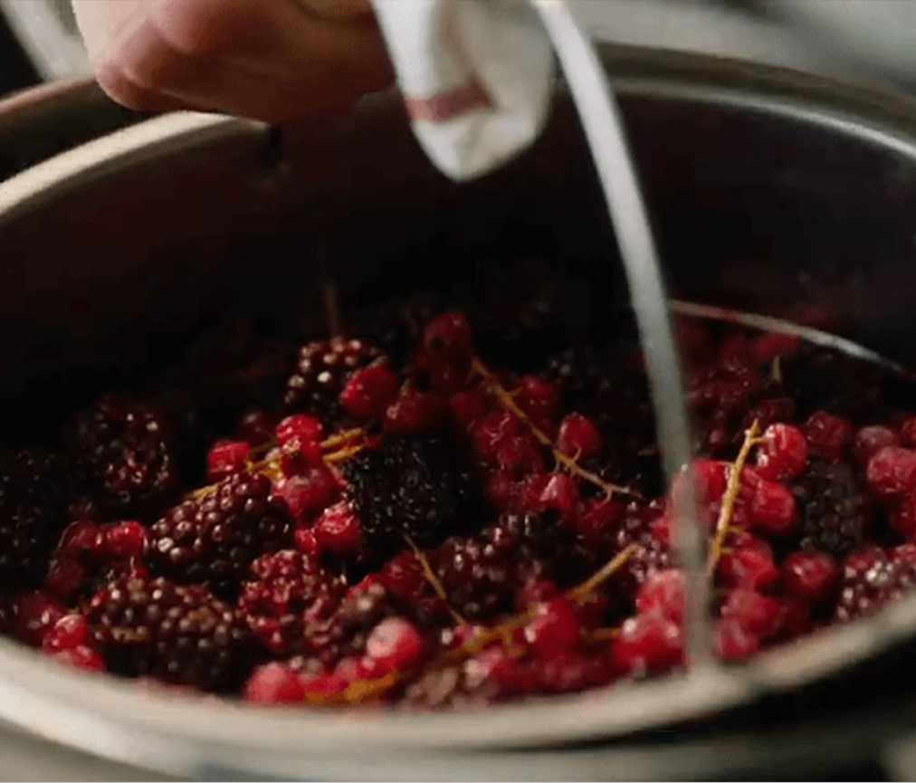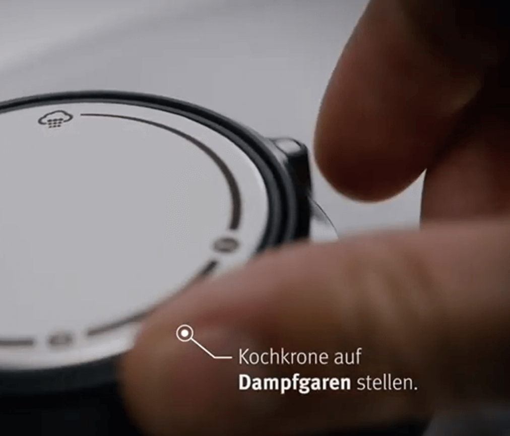 During the cooking process, most of the water in the pot evaporates. If you want to obtain 100% juice, you can place a second, unperforated insert to catch the juice in the water under the perforated insert. Please note the maximum filling height when doing this.