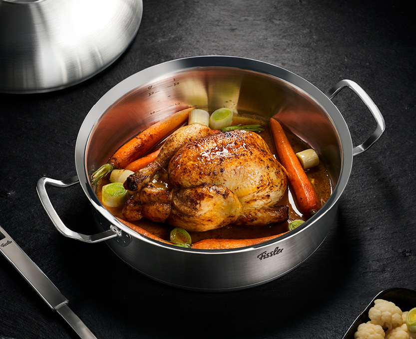 The optimum pot size depends on the portion size and the number of people. Fissler offers suitable roasters and roasting pots for every application:
